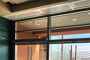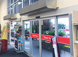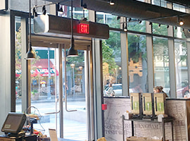 Perhaps the most common application for an air curtain is in a retail setting where an air curtain is placed above a commercial front door, such as a store entrance. During peak hours, these retailers have consistent pedestrian traffic. While the consistent business is great, the constant opening and closing of a door can overwhelm the building's HVAC system, while also letting in bugs, debris, fumes, humidity and excessive heat/cold.