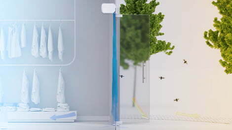Most commonly, the air curtain separates conditioned inside air from outside air, preventing the infiltration of cold or hot air, bugs, fumes, humidity, dust and debris. Depending on the industry or even the geographic region, air curtains can be called Fly Fans, Air Barriers, Air Doors or Air Shields.