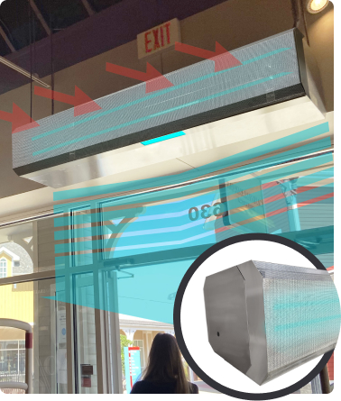 UnheatedThe UVC-Aire offers a variable speed air curtain in a stainless-steel case. ¾ HP motors run continuously on low speed to provide a constant stream of purified air. Low-speed operation of the unit has been proven to inactivate/kill up to 99% of Coronavirus pathogens passing through the air curtain. The UVC-Aire is ideal for healthcare, retail, gyms, restaurants and other facilities looking to provide an added layer of protection against airborne germs.