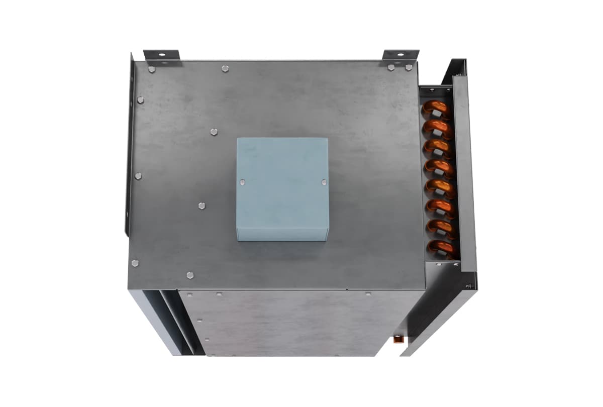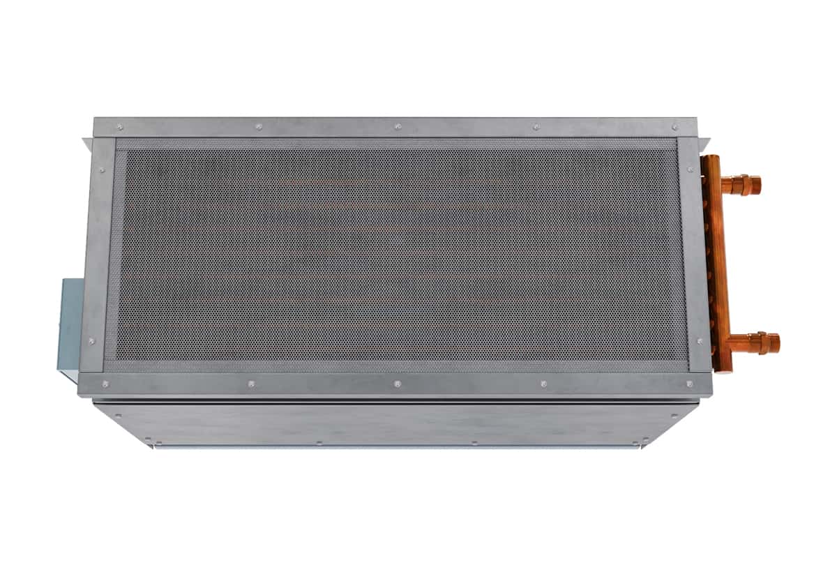 - Hot water coil comprised of galvanized steel casing, 5/8" copper tube, aluminum fins, and same end supply/return connections