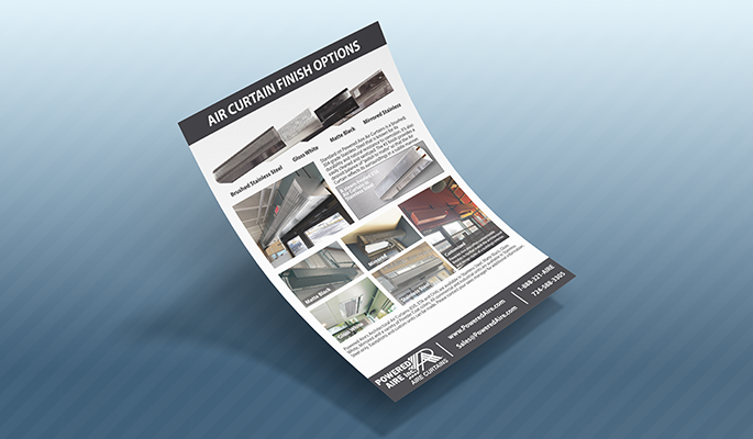 Powered Aire Air Curtains come standard with brushed 304 grade stainless steel, offering durability, corrosion resistance, and ease of cleaning. The #3 finish strikes a balance between polished and matte for a refined look.
