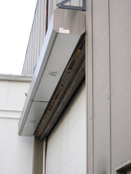 Unlike climate control applications that traditionally require low velocity streams of air, air curtains used primarily for insect control require significantly higher air velocity with high air flow uniformity. It takes considerable velocity across an entire opening, especially near the floor, to influence and change the flight path of flying insects (especially the big ones). Insect control applications usually prioritize insect control over energy savings. Common insect control applications include restaurant back doors or loading docks in the food and beverage industry. Preventing insects from entering these sensitive areas is critical for the health and safety of both personnel and consumers.