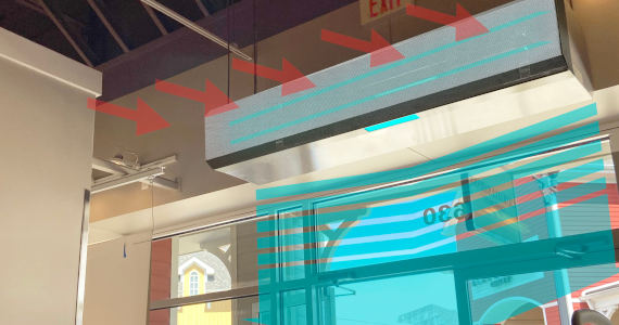 With the addition of a UVC-Aire air curtain, restaurants, offices, medical facilities and other businesses serving the public can take proactive steps to control and kill airborne viruses like Coronavirus, the Flu and Common Cold. Powered Aire’s UVC-Aire can be added to existing air curtains or purchased as a complete unit.