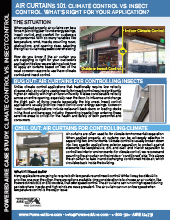 Air curtains for insect control require high air velocity and uniformity. Air Curtains for climate require a greater degree of mounting precision. Learn more in our case study.